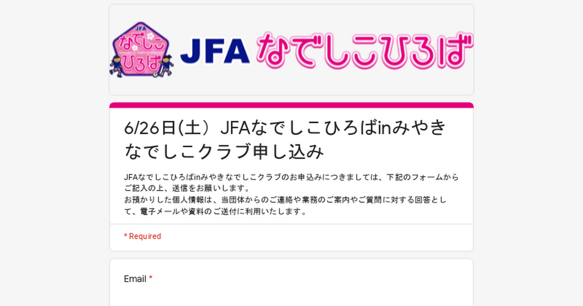 JFAなでしこひろばinみやきなでしこクラブのお申込みにつき...