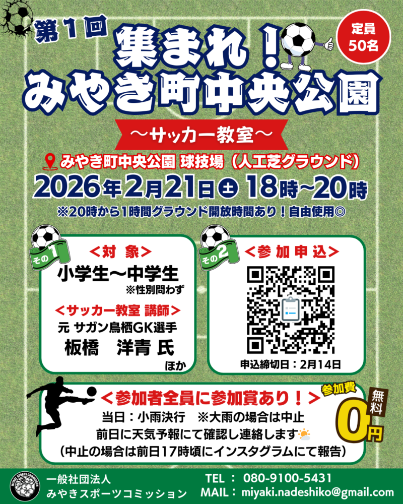 ※ご不明点等はDMまたは みやきなでしこクラブGmail に