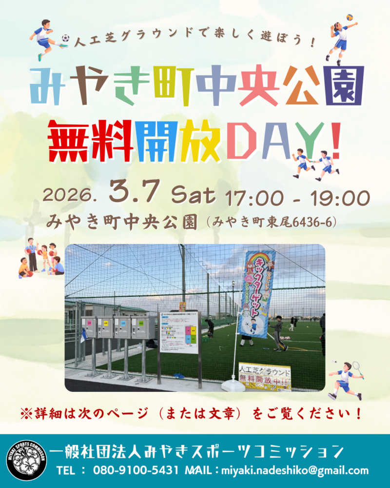 2026年1月より利用開始した”みやき町中央公園”の人工芝にて無料開放イベント開催🌟
